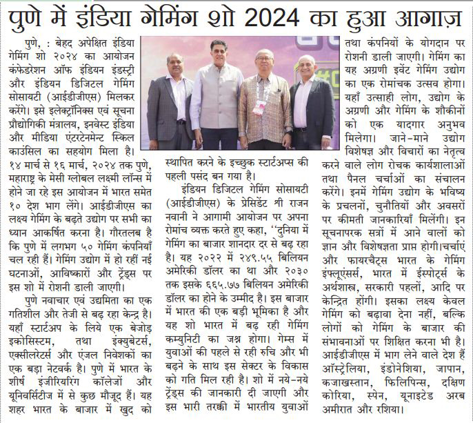 The highly anticipated the 6th edition of the India Gaming Show 2024, jointly organized by the Confederation of Indian Industry and Indian Digital Gaming Society (IDGS) supported by Ministry of Electronics and Information Technology,